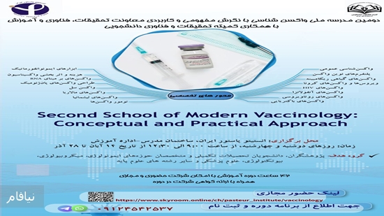 به اطلاع می رساند دومین دوره مدرسه ملی واکسن شناسی انستیتو پاستور ایران با عنوان <<واکسن شناسی کلاسیک نوین با نگرش مفهومی و کاربردی>> در آبان و آذر سال جاری برگزار خواهد شد.