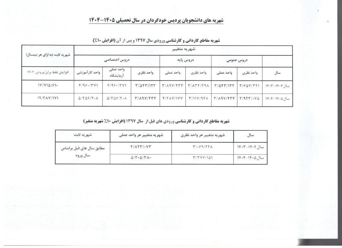 • جدول شهریه دانشجویان شهریه پرداز